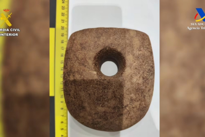 Durante un operativo en el Aeropuerto de Bilbao, la Guardia Civil española y la Agencia Tributaria aseguraron piezas arqueológicas y paleontológicas catalogadas como patrimonio histórico de México y Ecuador.