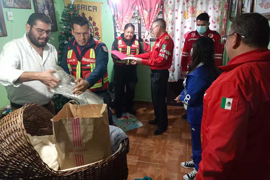 A casi un mes de su parto atendido en Patio Toluca, elementos de Protección Civil y Bomberos de Toluca visitaron a Nataly, para entregarle un pequeño presente para su bebé.