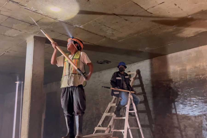 En su intervención, el Director del OAyST mencionó que este rebombea el suministro a los tanques La Teresona, Los Gigantes, San Miguelito, Agustín Millán, San Bernardino y Calvario, los cuales distribuyen agua a 14 zonas del municipio, por lo que se realiza su limpieza general, resane de grietas, fisuras internas y externas, además de recubrimiento interior con película plástica, que prolongará la vida útil de la infraestructura y mantendrá la calidad del agua, beneficiando así a miles de familias.