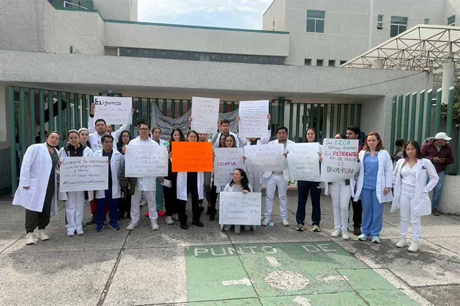 Con pancartas en las que se leía “La residencia médica no es voluntariado” y “La beca no es un privilegio, es un derecho y una necesidad para poder seguir formándonos y brindar atención digna y segura”, los residentes exigieron la intervención de las autoridades del Gobierno del Estado de México.