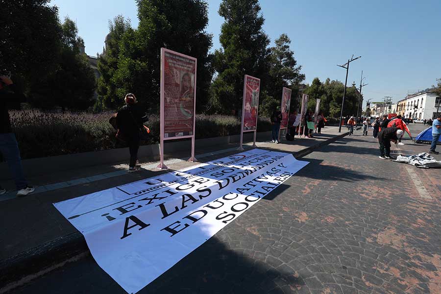 Hacia el mediodía, los docentes montaron casas de campaña frente a Palacio de Gobierno, sobre avenida Lerdo de Tejada, acompañadas de pancartas y lonas con sus consignas.