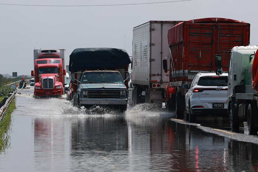El kilómetro 5 de la carretera Lerma-Tenango del Valle continúa anegado, lo que ha provocado asentamientos vehiculares y complicaciones para los conductores.