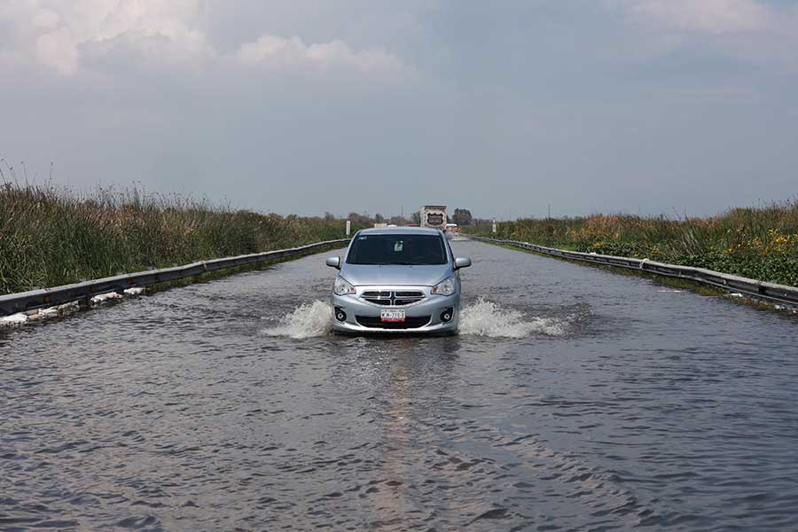 Desde hace más de un mes, este tramo sufre el desbordamiento de las ciénegas de Lerma, y pese a los esfuerzos del personal de mantenimiento, el nivel del agua no ha disminuido.