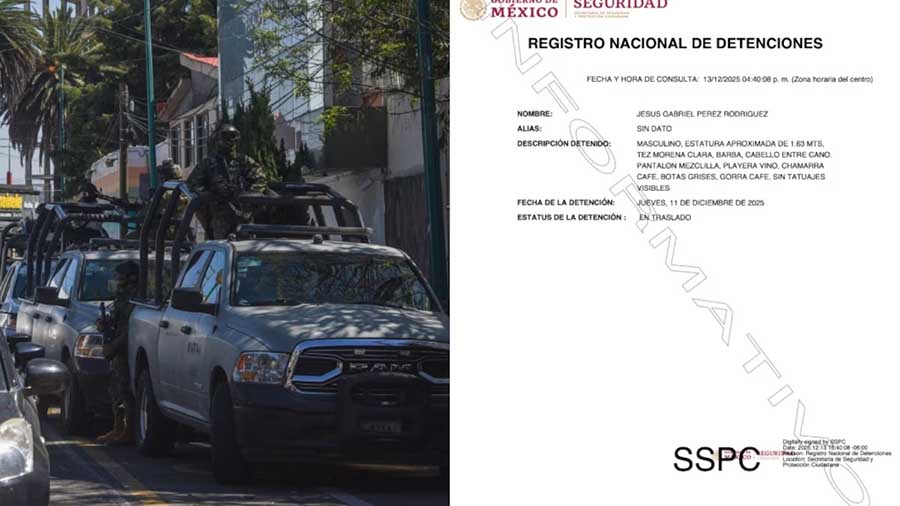 Según datos del Registro nacional de Detenciones, la captura del exfuncionario ocurrió el jueves 11 de diciembre de 2025, aunque no se especificó a dónde fue trasladado