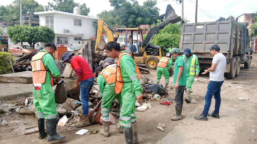 En Veracruz, cuadrillas de la SICT conformadas por 184 trabajadores y 94 máquinas apoyan a los gobiernos municipales en Poza Rica y Álamo.