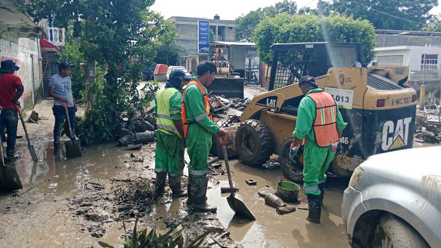En San Luis Potosí se apoya con labores de limpieza en el Camino Chalco Axtla de Terrazas y Camino la Ceiba; en Tampacán, que presenta una obra de drenaje colapsada; y en Taman-El Banco- Xilhuazo en Tamazunchale.
