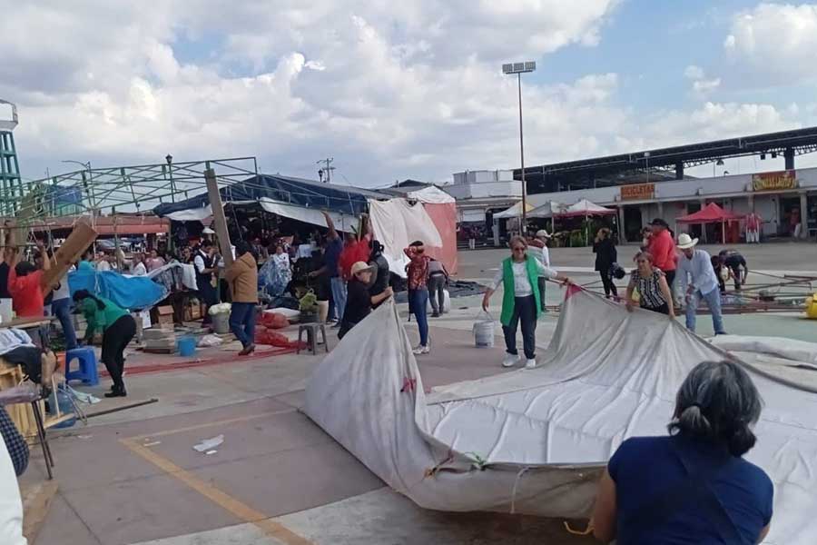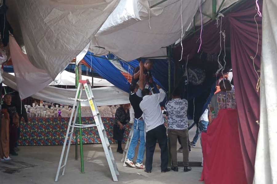 De acuerdo con los primeros reportes, la caída de la lona provocó también el desplome parcial de la estructura provisional utilizada por los vendedores ambulantes del lugar.