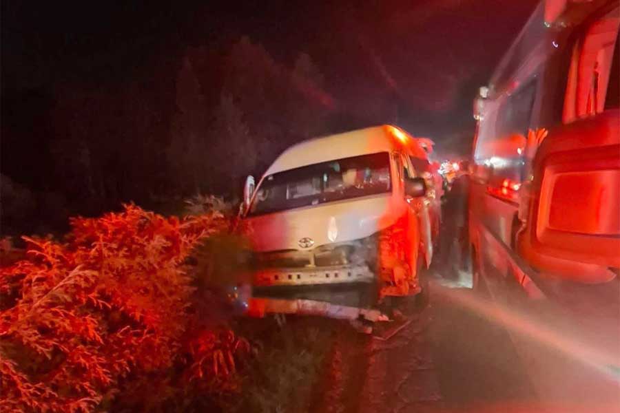 El accidente se registró a la altura de la desviación hacia San Pedro Atlapulco, donde una camioneta tipo Urvan y un automóvil particular impactaron de frente.