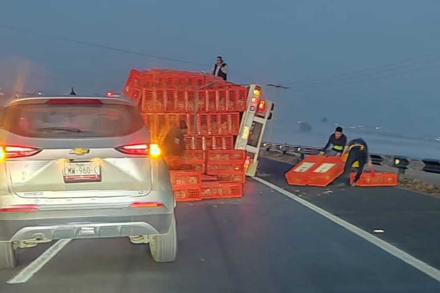 La unidad quedó recostada sobre uno de los carriles, provocando que parte de la carga quedara esparcida sobre la cinta asfáltica. Automovilistas alertaron a los cuerpos de emergencia y a elementos de seguridad, quienes arribaron para auxiliar al operador y dirigir la circulación a fin de evitar un incidente mayor.