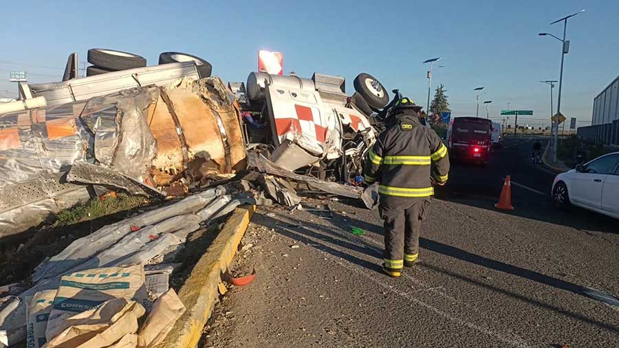 La mañana de este lunes se registró la volcadura de un tráiler en la salida de la autopista Toluca–Naucalpan, con dirección al Boulevard Aeropuerto, provocando afectaciones viales en la zona.
