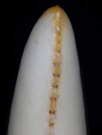 “Utilizando microscopios de alta potencia, logramos observar el hierro dentro de una fina capa de esmalte. Fue interesante percatarnos que las estrías contienen la mayor parte del mineral, lo que sugiere que están reforzadas para desgarrar a las presas”, explicó.