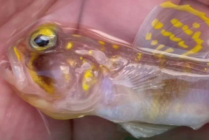 Hallado a 210 metros de profundidad en la isla Ishigaki de Okinawa, este ejemplar pertenece a la familia de los gobios, pequeñas criaturas marinas que suelen habitar entre arrecifes de coral.