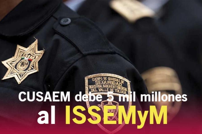 Los Cuerpos de Seguridad Auxiliar del Estado de México (CUSAEM) adeudan al Instituto de Seguridad Social del Estado de México y Municipios (ISSEMyM) cerca de 5 mil millones de pesos, reconoció el secretario de Seguridad estatal, Cristóbal Castañeda Camarillo, durante su comparecencia ante el Congreso local como parte de la glosa del Segundo Informe de Gobierno de la gobernadora Delfina Gómez Álvarez.