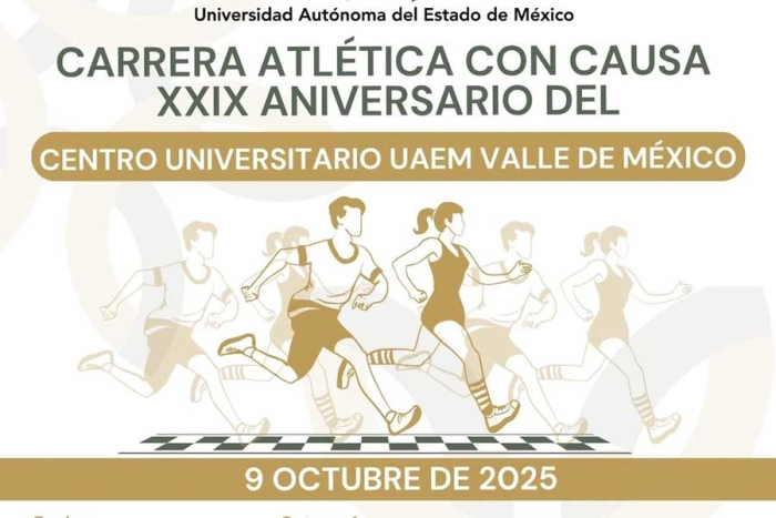 El Centro Universitario UAEM Valle de México festejará su vigésimo noveno aniversario con un evento deportivo que busca fortalecer la unión y promover la actividad física: la Carrera Atlética con Causa. La cita está programada para el próximo 9 de octubre de 2025 en las instalaciones universitarias.