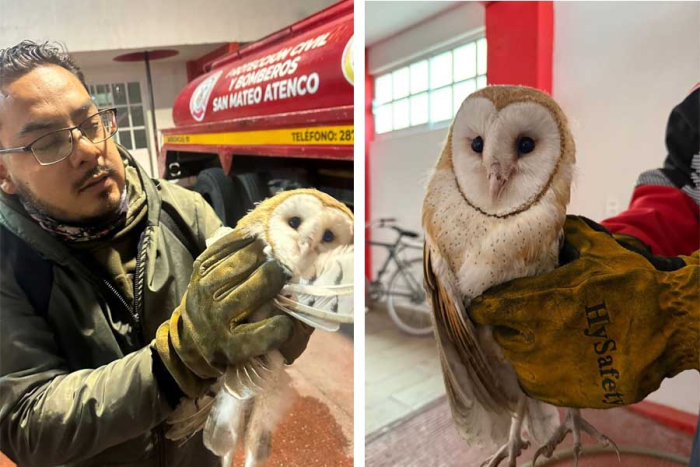 Una lechuza fue rescatada por personal de Protección Civil y de la Unidad de Control y Bienestar Animal, luego de un reporte ciudadano en el municipio de San Mateo Atenco.