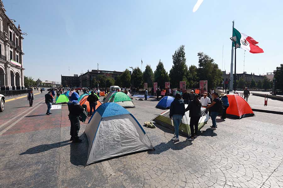 Hacia el mediodía, los docentes montaron casas de campaña frente a Palacio de Gobierno, sobre avenida Lerdo de Tejada, acompañadas de pancartas y lonas con sus consignas.