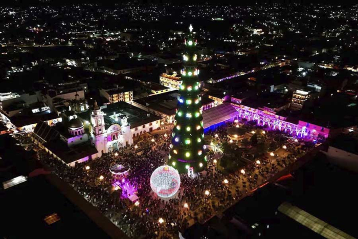 Finalmente, en la plaza principal del pueblo, a un costado del colorido kiosco mudéjar, las y los visitantes pueden admirar el enorme árbol de Navidad de 68 metros de altura, el cual está adornado con una esfera monumental de 12 metros y más de 70 mil luces.