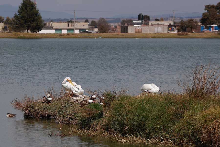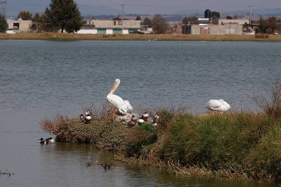 Una vez más, ejemplares de pelícano americano arribaron al bordo de San Jerónimo, también conocido como bordo de Palmillas, en la zona norte de Toluca.