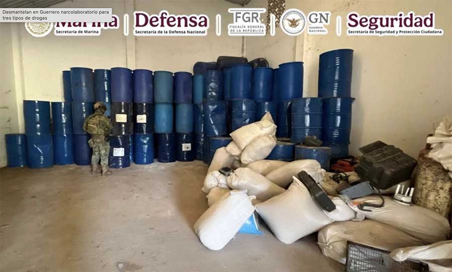 Autoridades federales desmantelaron en Guerrero inmuebles utilizados como narcolaboratorios.