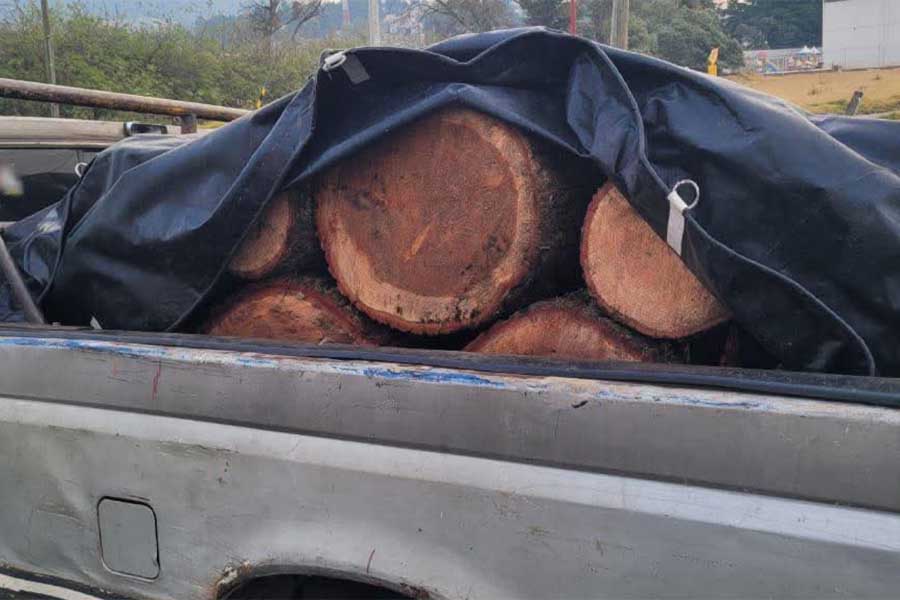 Metros adelante, los elementos lograron dar alcance a la unidad y realizaron una inspección preventiva. En la batea del vehículo localizaron aproximadamente siete metros cúbicos de madera, cuya procedencia no fue acreditada por los ocupantes.