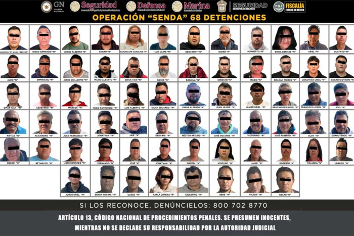 Fuerzas federales y estatales desplegaron la Operación Senda con el objetivo de combatir el robo a transporte de carga en carreteras y vialidades del Estado de México, acción que derivó en la detención de 68 personas, el aseguramiento de 137 inmuebles y el decomiso de miles de toneladas de mercancías, armas y vehículos relacionados con esta actividad delictiva.